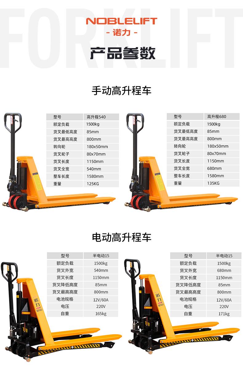 諾力叉車手動(dòng)液壓搬運(yùn)車地牛高升程剪叉式升高車升降平臺(tái)電動(dòng)叉車