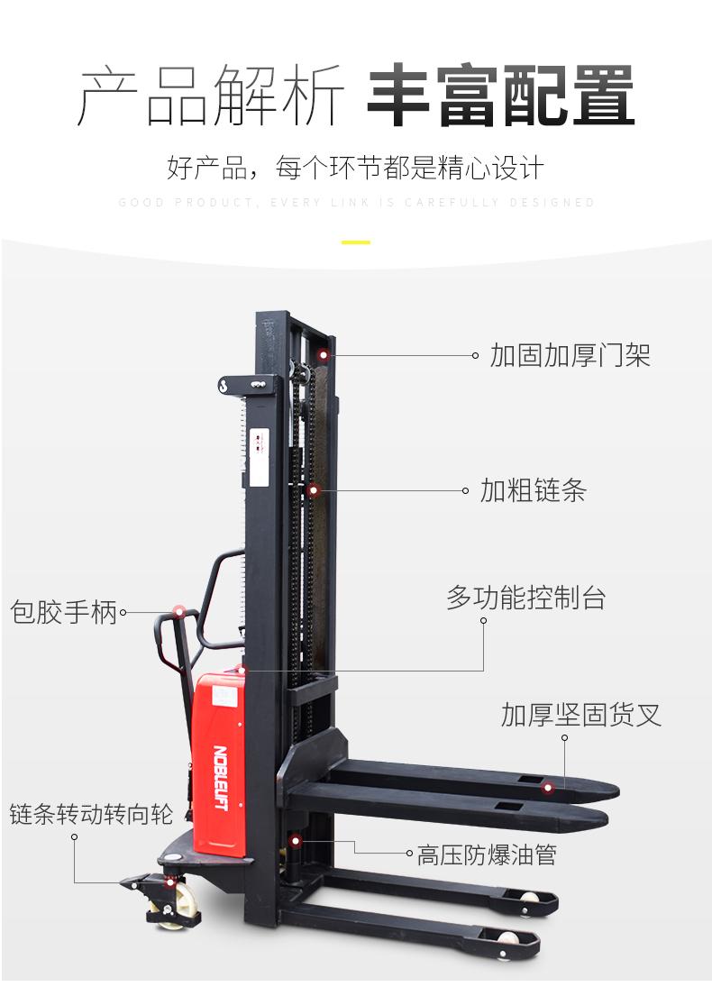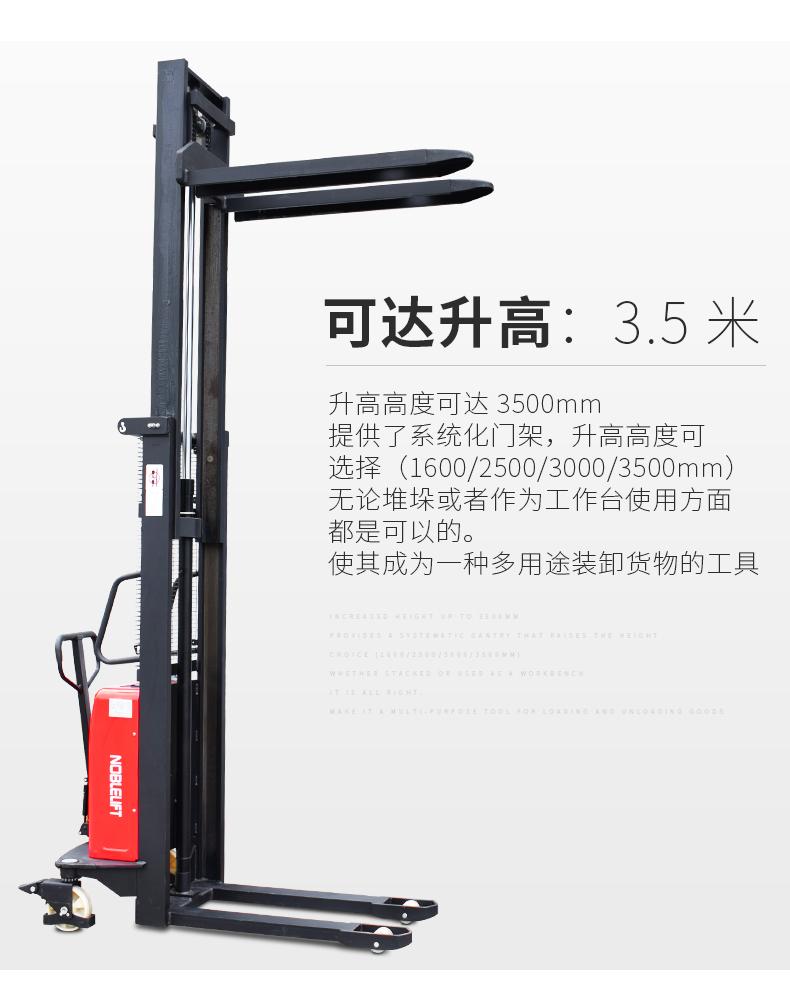 諾力電動(dòng)叉車半電動(dòng)堆高車1.5噸2噸3米半自動(dòng)托盤(pán)堆垛車升
